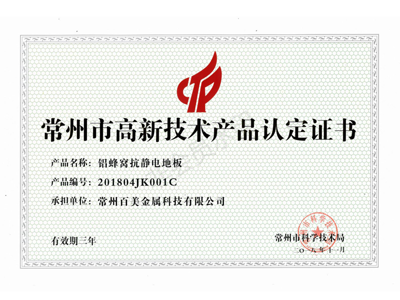 常州市高新技術(shù)產(chǎn)品認(rèn)定證書
